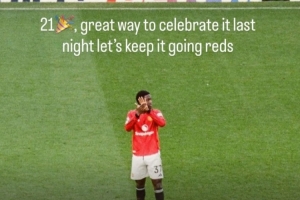 梅努在个人社媒晒出自己在球场的照片,配文写道:“昨晚以一种很棒的方式庆祝自己21岁生日,让我们保持这样的势头!”